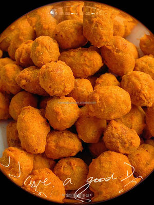바삭바삭한 밀가루의 레이어와 풀-보디에드 땅콩의 외부 위의 전분 피복물, 그것이 약간의 양념과 맛, 맛깔짐과 딜리셔스가 풍부한 것 입니다.