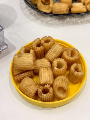 설명: 맛있고 脆고 튀긴 쌀 크래커, 간식하기에 완벽합니다.